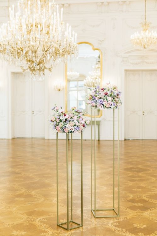 Modern, egyszerű formájával díszes éke lesz a dekorációnak. Főasztal háttér dekor elem vagy boldogságkapu is készülhet belőle. A virágtartó tetejére, oldalára, aljára kerül az esküvő stílusához illeszkedő kész virágkompozíció. A virágtartó állványokat a szertartás kiegészítő dekorációjaként is lehet használni, érdemes hozzá az alacsonyabb virágtartóállványainkat kombinálni, ami színben is teljesen passzol ezekkel az állványokkal. Rendezvényeken magas installációk alapjaként szolgálhat, mellé a 200 cm magas arany virágtartó állvány jól kombinálható.