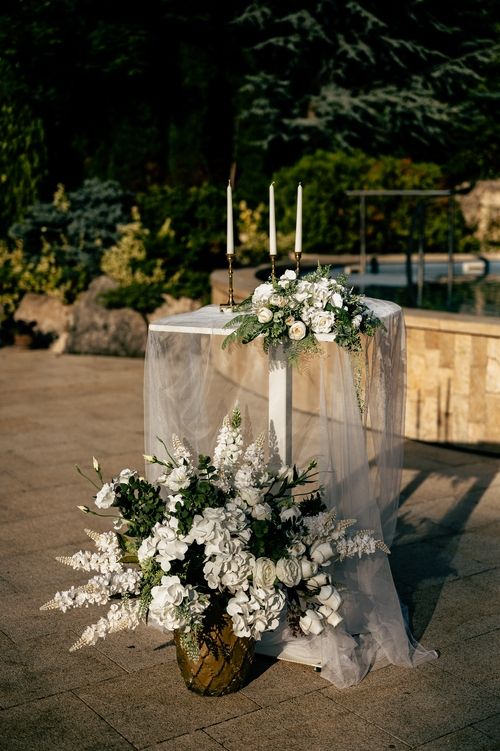 Extravagáns, kicsit felül eltolt formájával és fekete színével nagyon markáns dekoráció. Vagány, kültéren és beltéren egyaránt jól használható. A kaput elég kisebb virág kompozíciókkal dekorálni, hogy jól érvényesüljön, de ha extra virágdekort képzelsz el, a hatás nem marad el. Jól mutat, ha a kapu elé is elhelyezünk kisebb dekorációt. A választás a tiéd. Akár neon feliratot is lógathatunk le róla. A színes mellett, a fehér vagy pasztell dekort is elbírja.